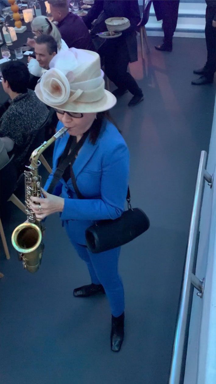 Solistisch musikalisch begleitend am Saxophon, Daniela-Mercedes Wendler.